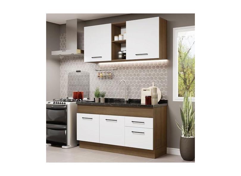 O menor preço encontrado no Brasil para Cozinha Compacta Madesa Agata 150002 com Armário e Balcão (sem Tampo e Pia) - Rustic/branco atualmente é R$ 934,99.
