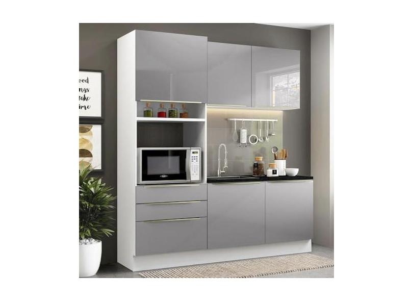 Cozinha Compacta Madesa Lux com Armário e Balcão 5 Portas 3 Gavetas - Branco/cinza