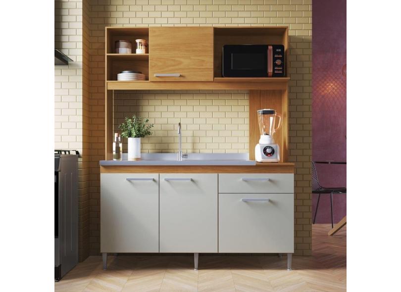 Cozinha Compacta Mali 4 Portas 1 Gaveta com Nichos e com Espaço Micro-ondas 151,5cm marrom / Off white