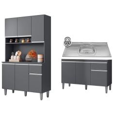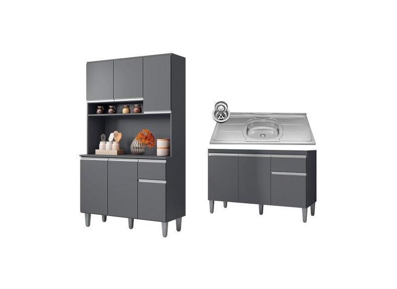 O menor preço encontrado no Brasil para Cozinha Compacta Márcia E Balcão Gabinete Com Pia Tatiane 120cm Cinza atualmente é R$ 1.402,90.