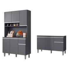 Cozinha Compacta Márcia e Balcão Gabinete Sem Tampo Tatiane 120cm Cinza - AJL Móveis