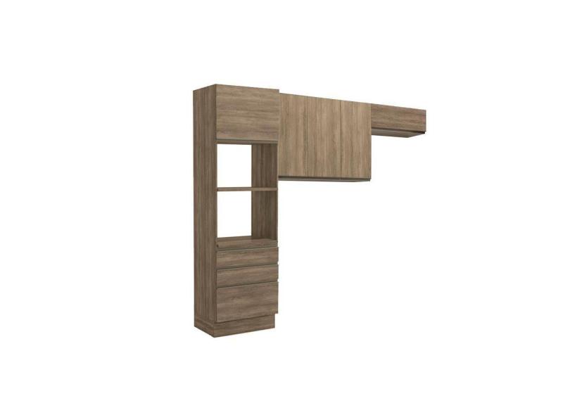 Cozinha Compacta Maxxi 3 Peças (2 Armários + 1 Paneleiro) Cpt37 Nogal - Kappesberg