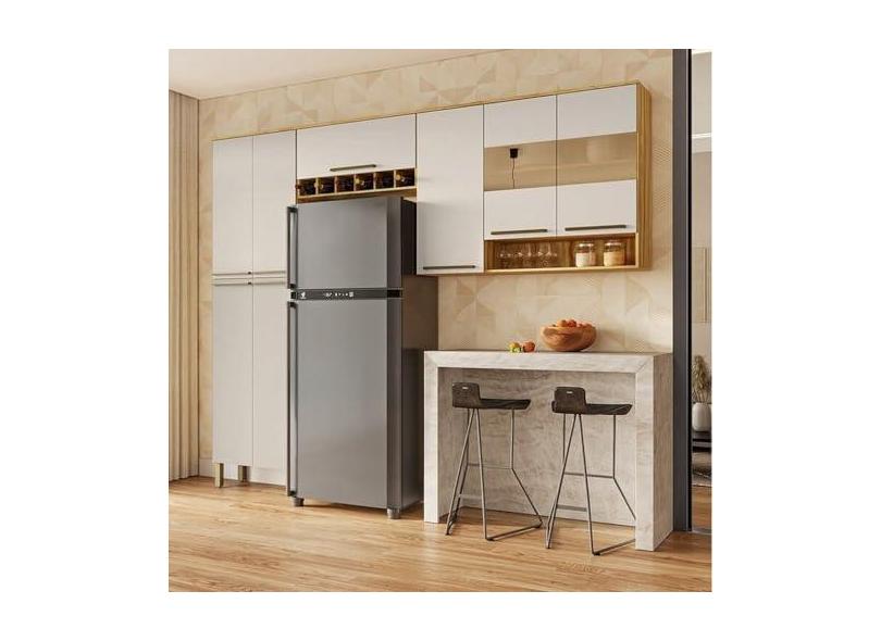 O menor preço encontrado no Brasil para Cozinha Compacta Modulada 3 Peças 8 Portas com Vidro Itália Espresso Móveis Amêndoa/Off White atualmente é R$ 1.117,36.