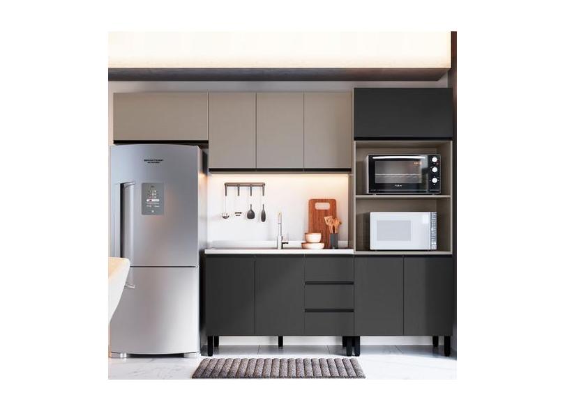 Cozinha Compacta Mogno 9 Portas 3 Gavetas Fumê/Grafite - Quiditá Móvei