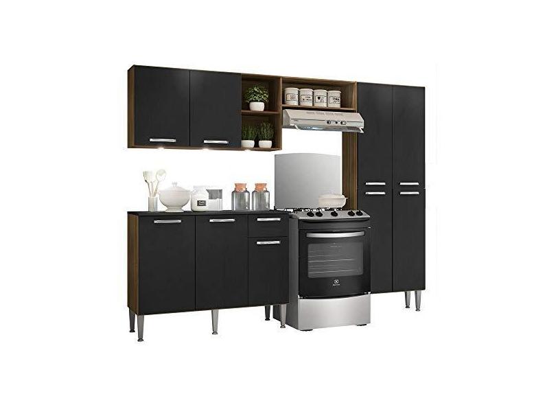 Cozinha Compacta Multimóveis Pequim Fg3413 com 3 Leds Armário e Balcão Madeirada/preta