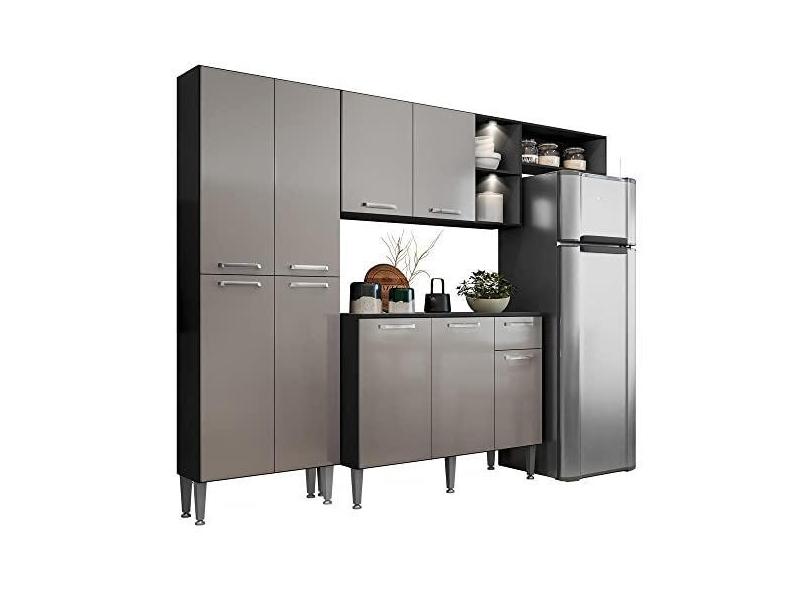 Cozinha Compacta Multimóveis Pequim Fg3572 com 2 Leds Armário e Balcão Preta/lacca Fumê