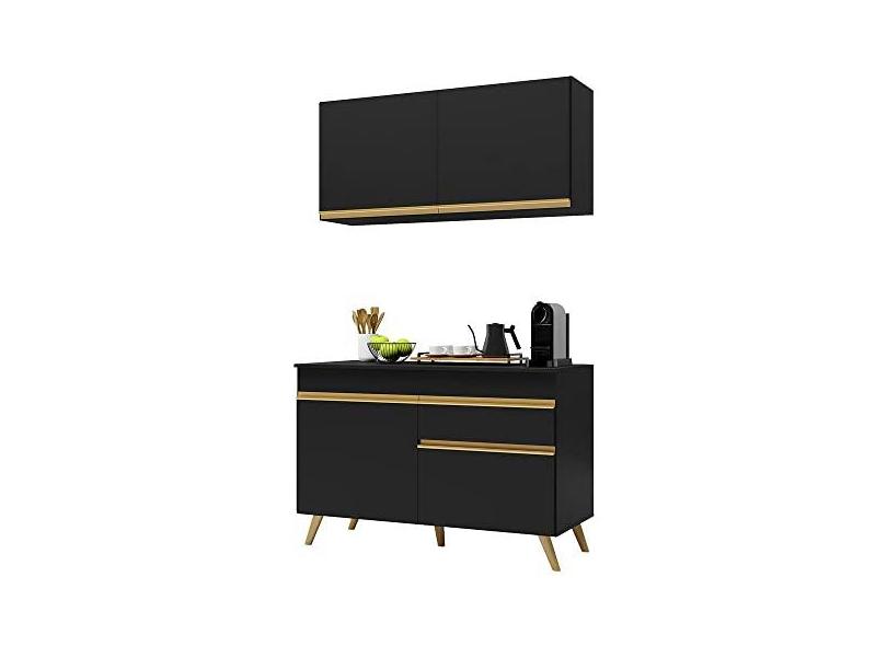 Cozinha Compacta Multimóveis Veneza Gb Fg3687 com Armário e Balcão Preta