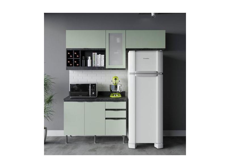Cozinha Compacta Orquídea 180cm 3 Peças, 5 Portas e 3 Gavetas com Divi
