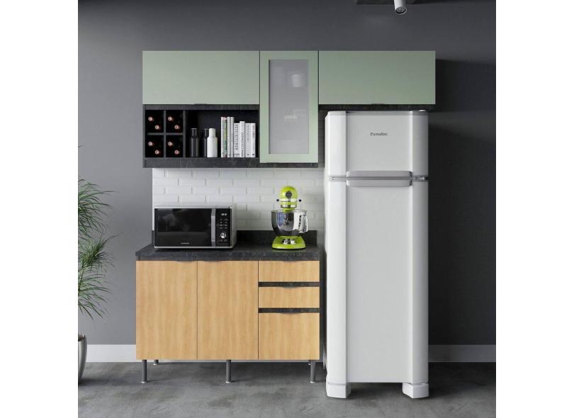 O menor preço encontrado no Brasil para Cozinha Compacta Orquídea 180cm 3 Peças, 5 Portas e 3 Gavetas com Divisor de Talheres e Tampo Cz1202 Mármore Lunar/Freijó/Verde Mar atualmente é R$ 1.124,43.