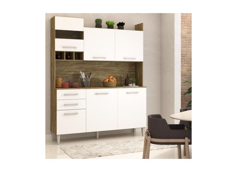 Cozinha Compacta Pratice 6 Portas 2 Gavetas Carvalho/Branco - Panorama