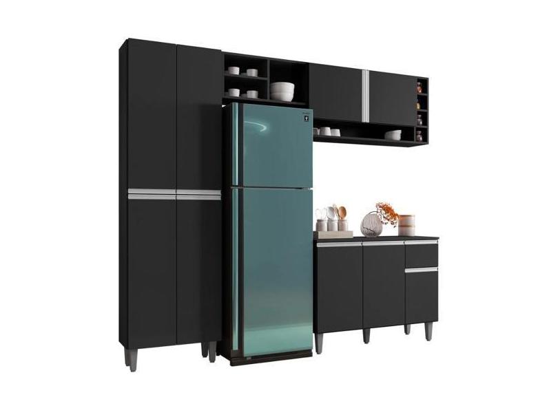 O menor preço encontrado no Brasil para Cozinha Compacta Ravena Balcão 3 Portas + Paneleiro 4 Portas Preto - A atualmente é R$ 836,91.