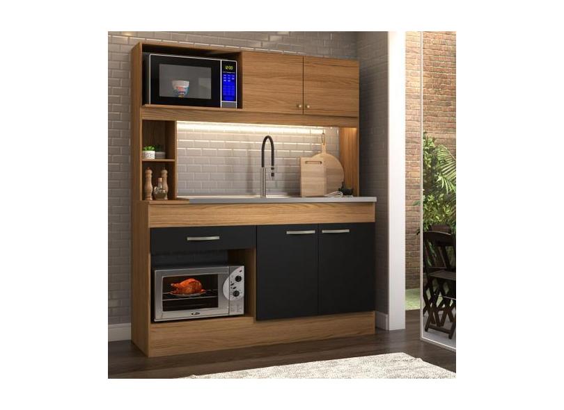 Cozinha Compacta São Paulo 4 Portas 1 Gaveta Cinamomo/Preto - Panorama