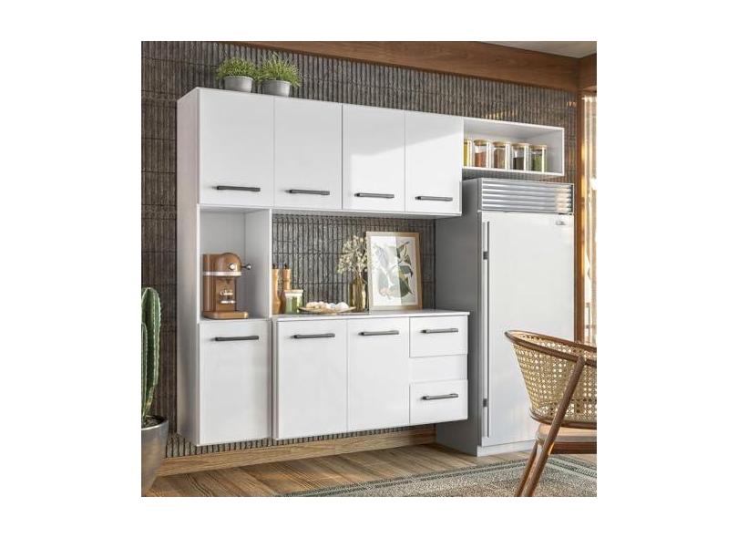 Cozinha Compacta Suspensa Juliete 7 Portas 2 Gavetas Branco - Nicioli