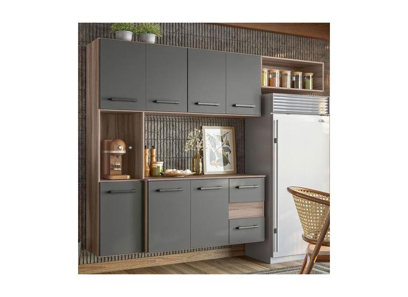 Cozinha Compacta Suspensa Juliete 7 Portas 2 Gavetas Carvalho Nature/C