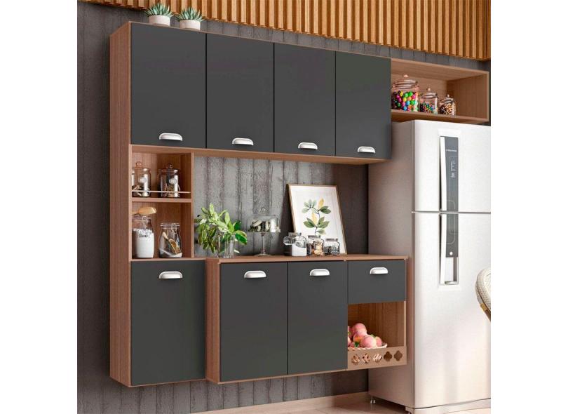 Cozinha Compacta Suspensa Mila 7 portas 1 Gaveta com Corrediças Telescópicas Poliman Móveis