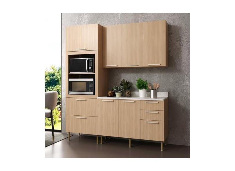 Cozinha Compacta Tulipa 170cm 3 Peças, 6 Portas e 5 Gavetas com Diviso