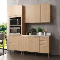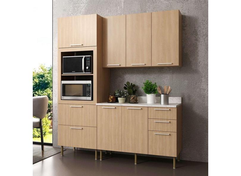 Cozinha Compacta Tulipa 6 Portas e 5 Gavetas Freijó/Mármore Branco - Tecno Mobili