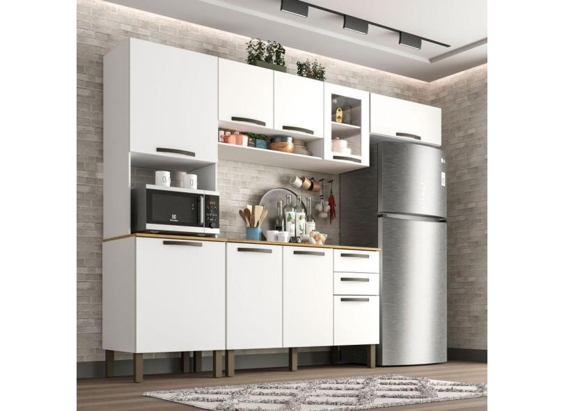 Cozinha Compacta Valencia Com Vidro 4 Peças 9 Portas 2 Gavetas Salleto Moveis Branco