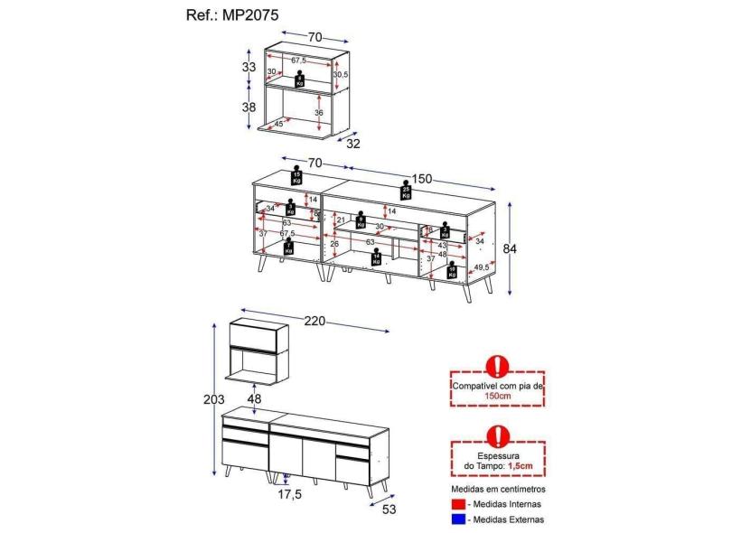 Cozinha Compacta Veneza Gw Mp2075 Com Armário E Balcão Branca