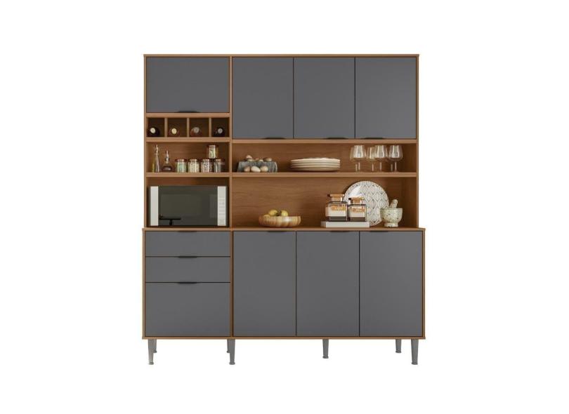 Cozinha Compacta Viena 8 Portas e 2 Gavetas Lukaliam Móveis Jequitiba/Cinza Fosco