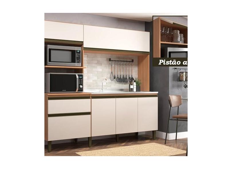 Cozinha Compacta Vitória 6 Portas 1 Gaveta 2 Nichos para Forno Freijó/Off White