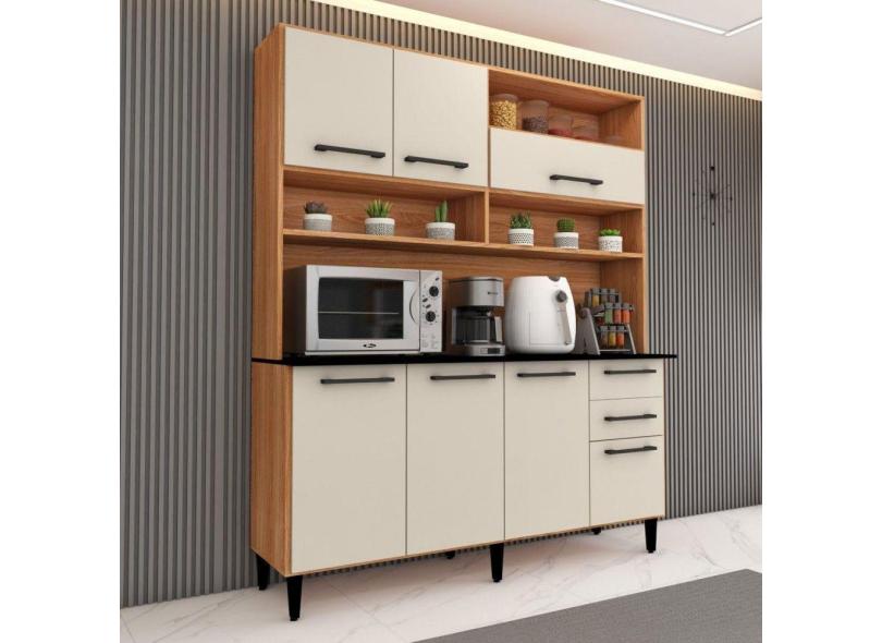 Cozinha Compacta Vitória 7 Portas 2 Gavetas Freijó/Off White - Panorama Móveis