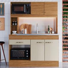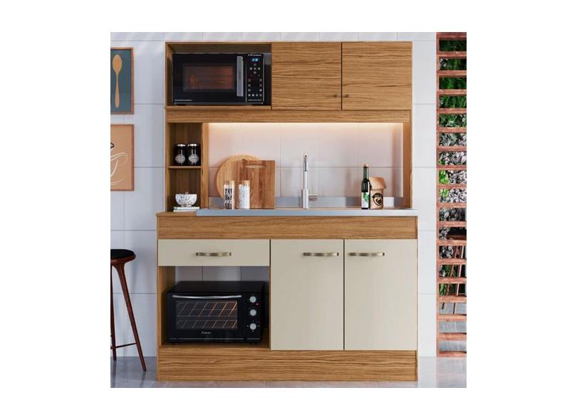 Cozinha Compacta Zeta 4 Portas 1 Gaveta Naturalle/Cristal - Decibal