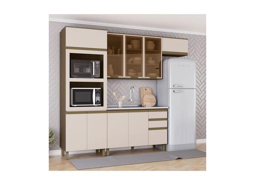 Cozinha Completa 10 Portas 2 Gavetas Com Vidro 100% Mdf Duna/Cristal -