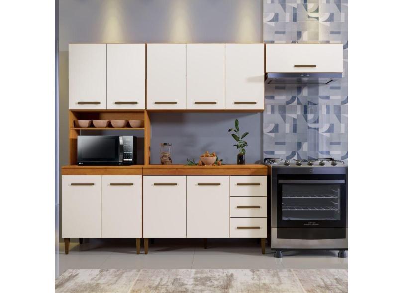 Cozinha Completa 10 Portas 3 Gavetas Atenas Kaiki Móveis Marrom/Off White