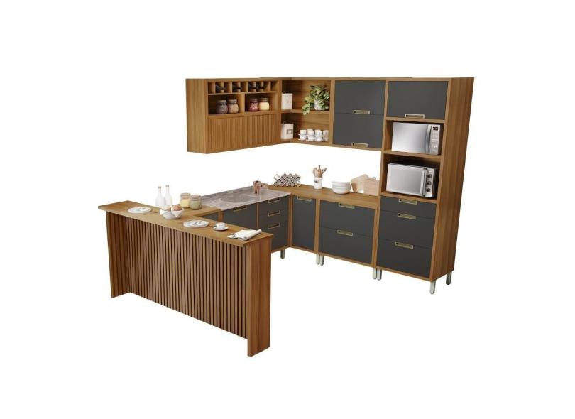 Cozinha Completa 100% MDF 9 Peças Nesher Imperatriz Marrom Grafite