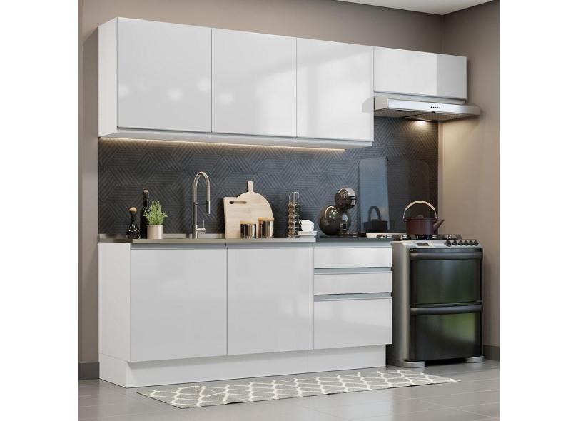 O menor preço encontrado no Brasil para Cozinha Completa 100% MDF Madesa Acordes 260003 com Armário e Balcão - Frentes Branco Brilho atualmente é R$ 1.597,98.