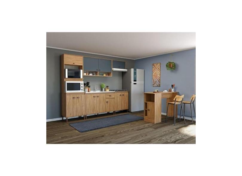 Cozinha Completa 11 Portas 1 Gaveta com Bancada Torino Mel/petroleo