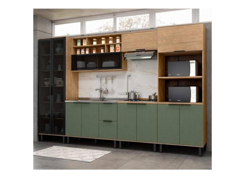 Cozinha Completa 11 Portas 3 Gavetas 100% Mdf Mx Móveis Toscana - Freijó/jade