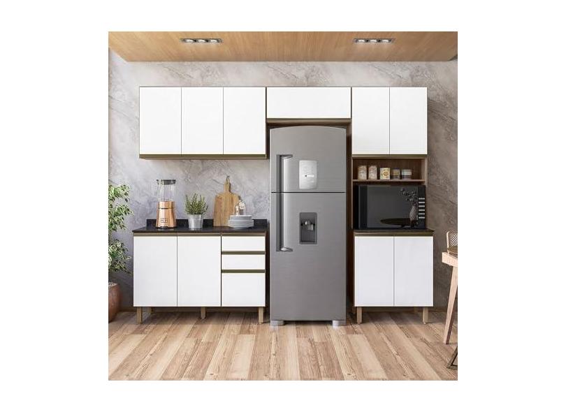 O menor preço encontrado no Brasil para Cozinha Completa 11 Portas 4 Gavetas 100% Mdf Angelita Carvalho Tok/Branco UV atualmente é R$ 1.399,98.