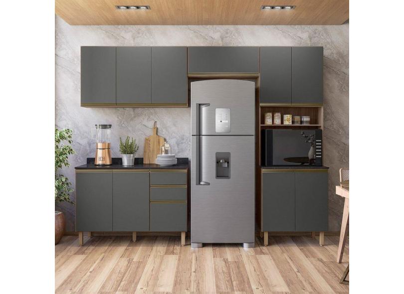 O menor preço encontrado no Brasil para Cozinha Completa 11 Portas 4 Gavetas 100% Mdf Angelita Carvalho Tok / Cinza atualmente é R$ 1.333,31.