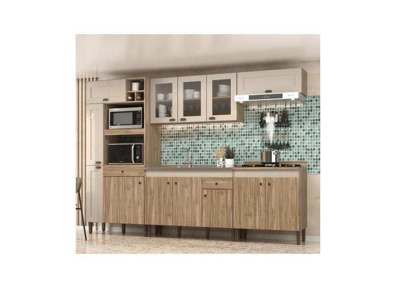 Cozinha Completa 13 portas 2 gavetas Veneza Carvalho OAK Cristalo Deci