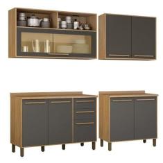 Cozinha Completa 2 Armários Aéreos e 2 Balcões Salvador Cinamomo/Grafi