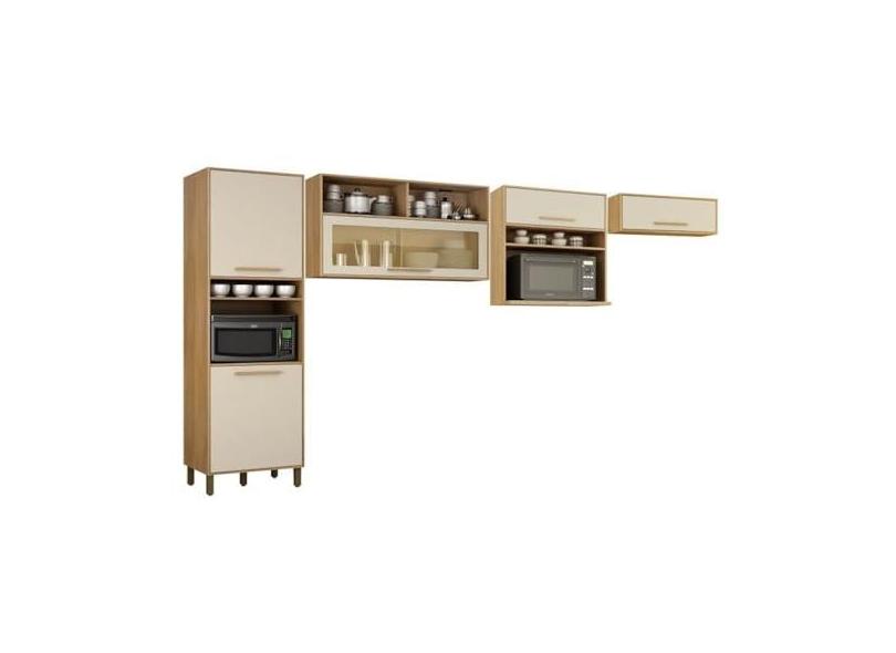 Cozinha Completa 3 Armários Aéreos e 1 Paneleiro Salvador Cinamomo/off White