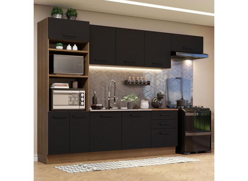 O menor preço encontrado no Brasil para Cozinha Completa 330001 Com Armário E Balcão Rustic/Preto atualmente é R$ 2.420,59.