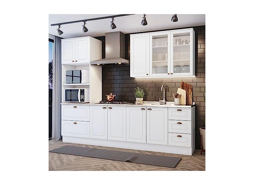 O menor preço encontrado no Brasil para Cozinha Completa 4 Peças Com Aéreo 3 Portas Com Vidro Amy Casa 812 atualmente é R$ 2.306,57.