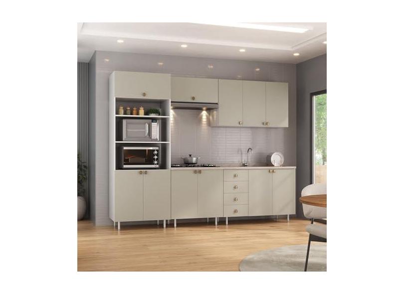Cozinha Completa 5 Peças 100% Mdf Bp 2 Balcões 2 Aereos e Torre Quente Maranello Branco/Panna