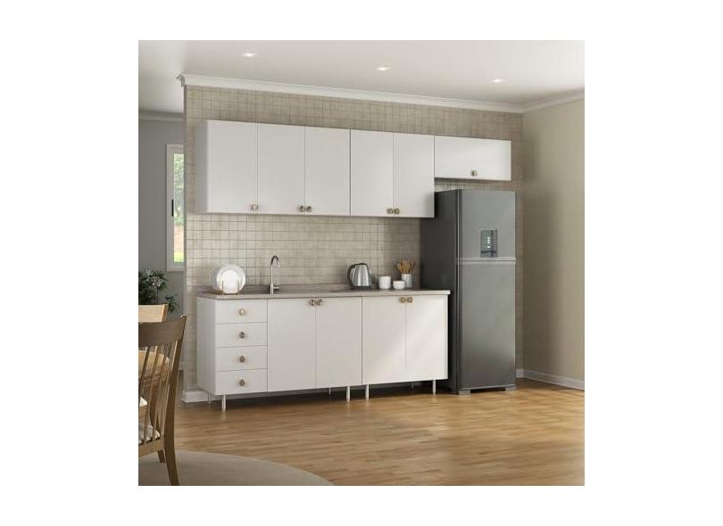 Cozinha Completa 5 Peças 100% Mdf Bp 2 Balcões 3 Aereos Maranello Branco