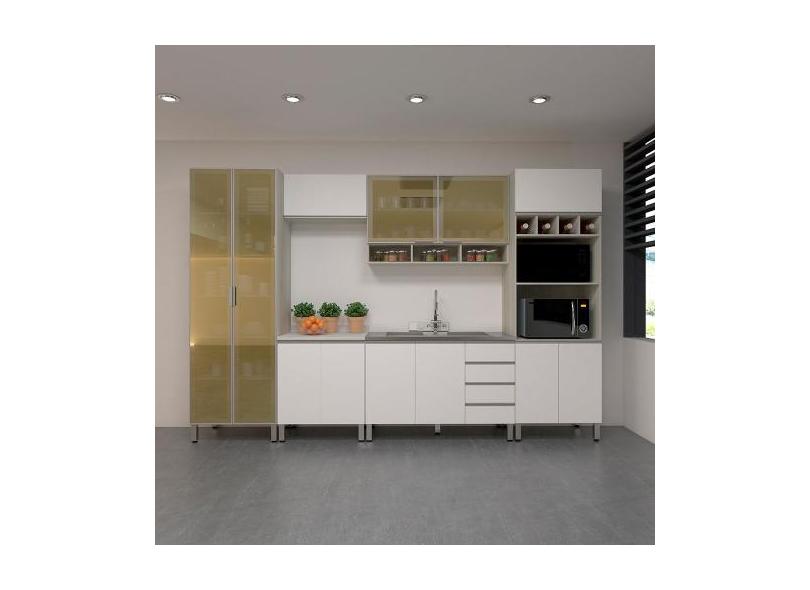 O menor preço encontrado no Brasil para Cozinha Completa 6 Peças Sem Pia Com Vidro Reflecta Lis Luciane Móveis atualmente é R$ 8.296,59.