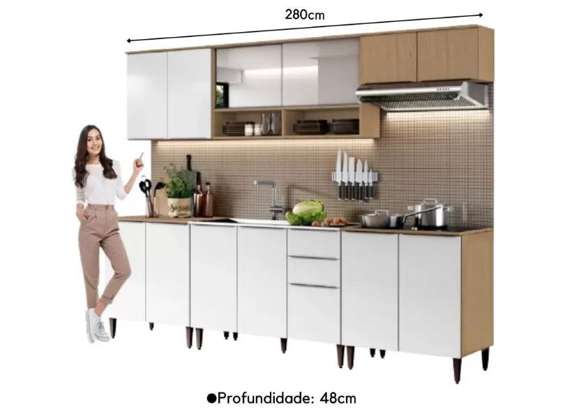 Cozinha Completa 7 Peças 2 Gavetas 13 Portas com vidro Juliette Aramóveis