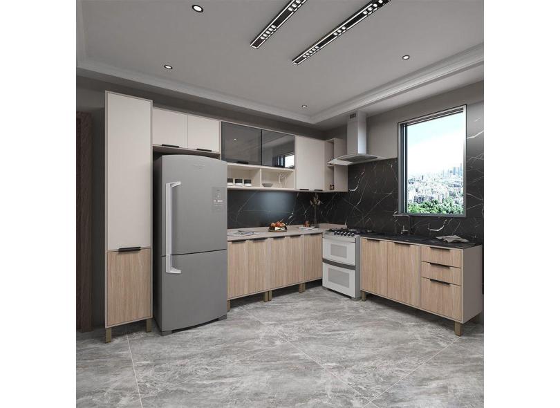 Cozinha Completa 8Peças C Vidro Reflecta Tampos E Sem Pia Stylo Luciane Móveis Cinammon-beige-cumaru