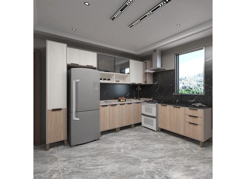 Cozinha Completa 8Peças C Vidro Tampos S Pia Stylo Luciane Móveis Cinammon-teka ártico-cumaru