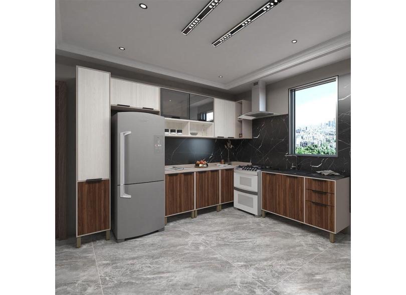 Cozinha Completa 8Peças C Vidro Tampos S Pia Stylo Luciane Móveis Cinammon-teka ártico-escarlate
