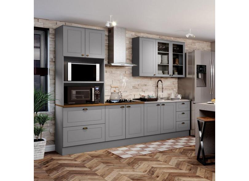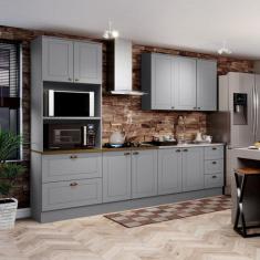Cozinha Completa 9 Portas 5 Gavetas Emily Cinza/Marrom