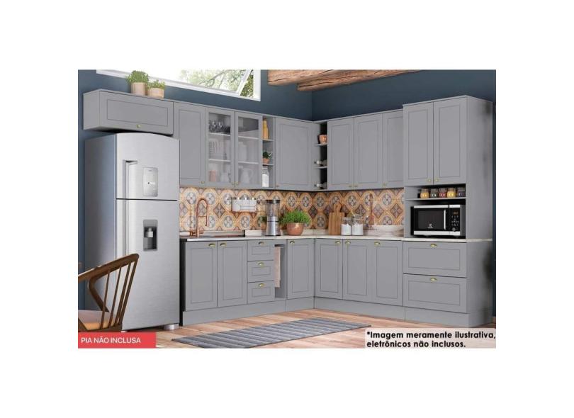 Cozinha Completa Americana 16 Peças (6 Armários + 1 Paneleiro + 5 Balcões + 4 Complementos) C5P33 Cinza - Henn