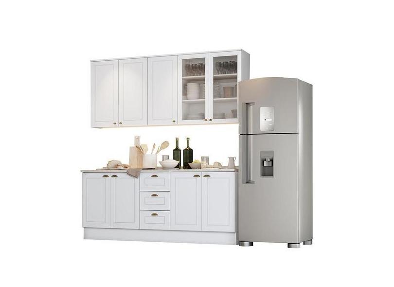 O menor preço encontrado no Brasil para Cozinha Completa Americana 4 Peças Branco com Tampo - Móveis Henn, Bra atualmente é R$ 2.372,09.